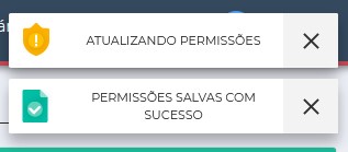 Após fazer a escolha, clique em salvar permissões no lado direito em baixo. Aparecerá uma mensagem dizendo que as alterações foram salvas com sucesso.