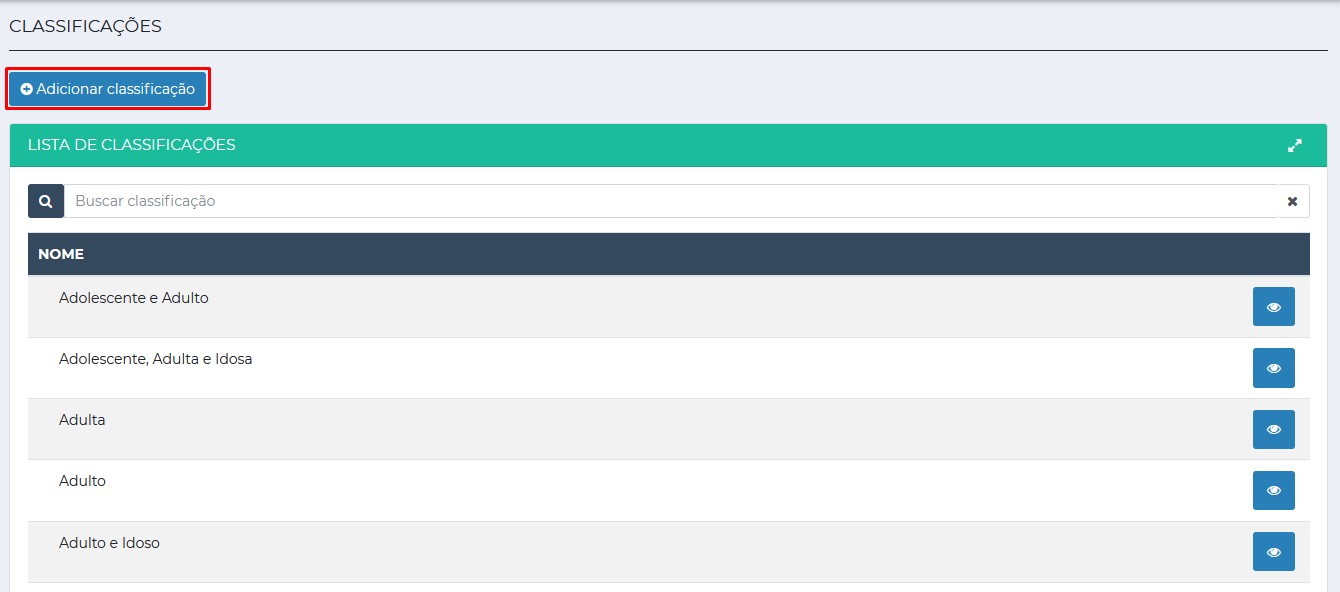 Para cadastrar classificações, primeiramente, é necessário o seguinte: