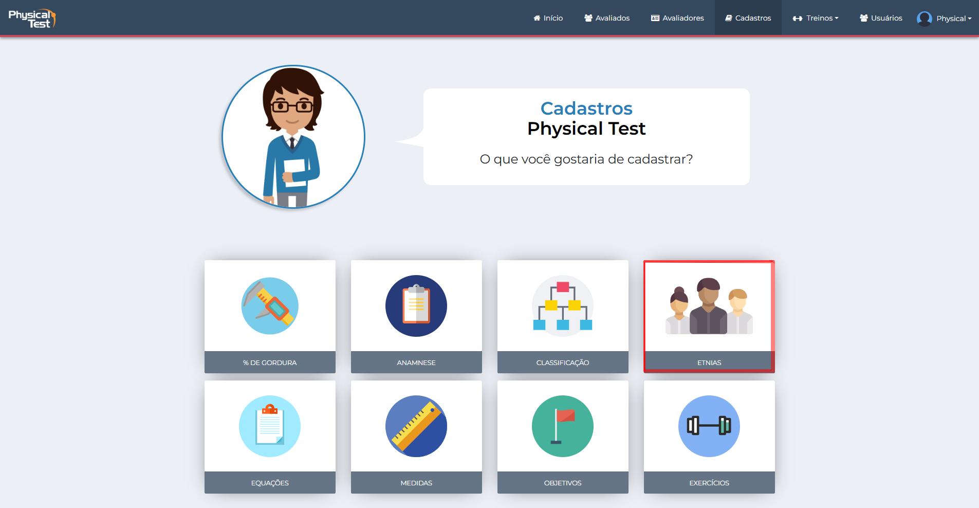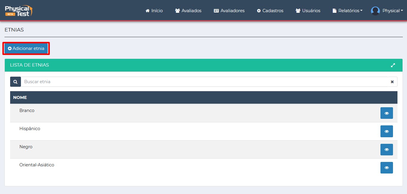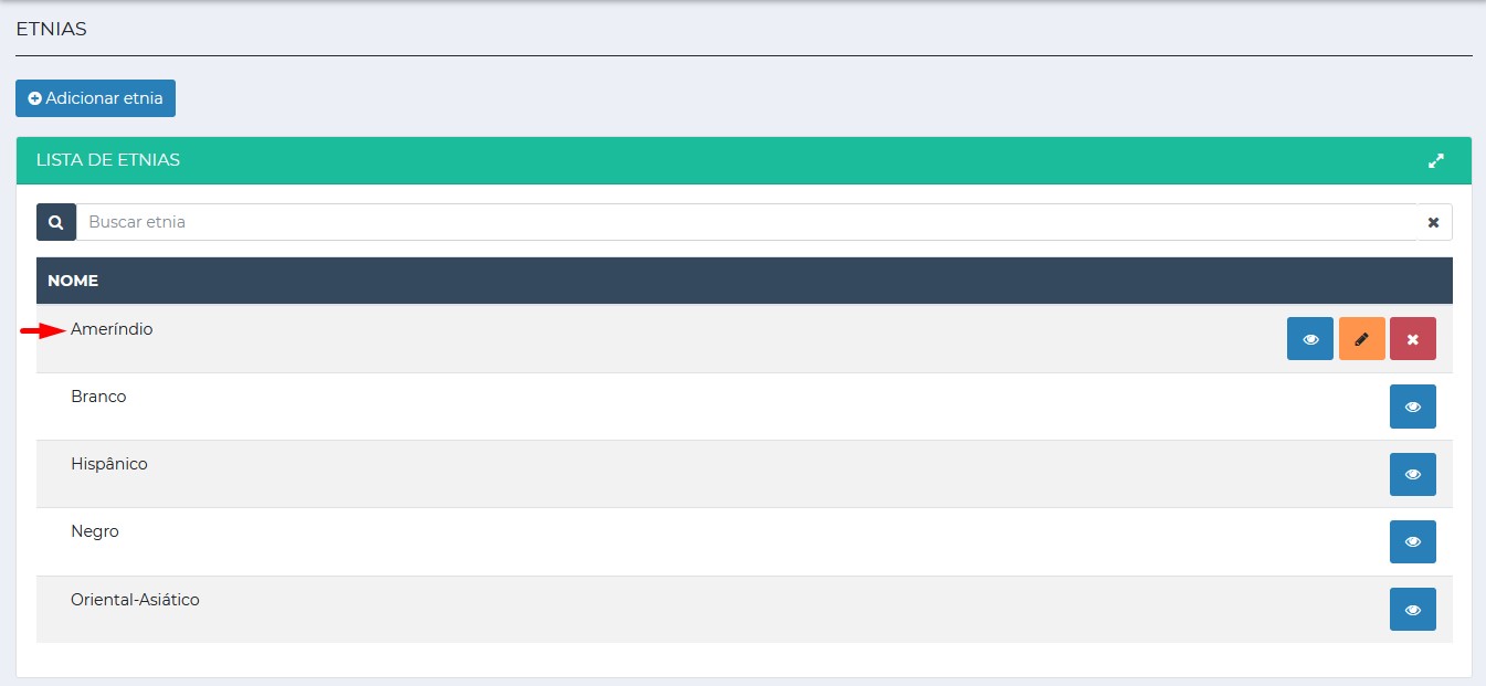 Segue o passo a passo para cadastrar etnias.