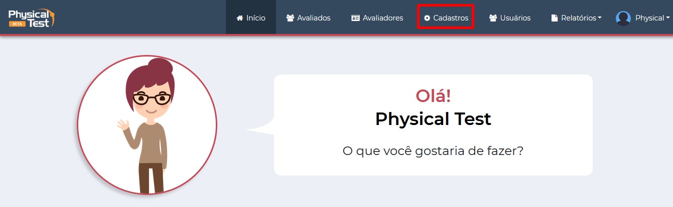 Clique em cadastros.