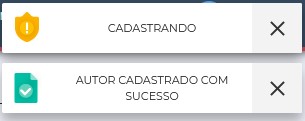 Após clicar em salvar será mostrada uma mensagem de cadastro feito com sucesso.